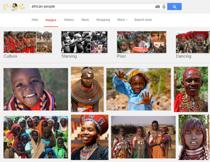 The following images offer an initial example of the types of misconceptions and generalizations that have infiltrated our collective understanding of life in Africa. In the first, a simple Google Image search query “African people” reveals a series of ornately decorated individuals in rural settings. We are offered some advanced search suggestions, including culture, starving, poor, and dancing. Are these the images that come to mind when we consider “African people”? Furthermore, is this how most people in Africa appear in reality?